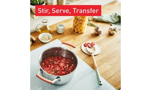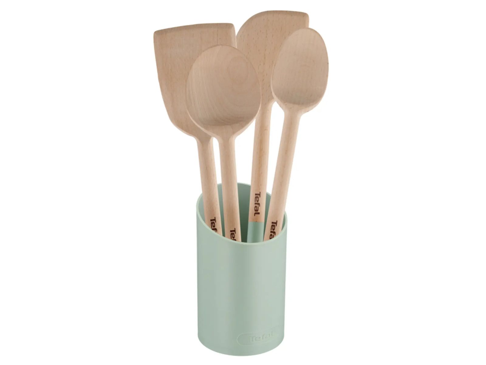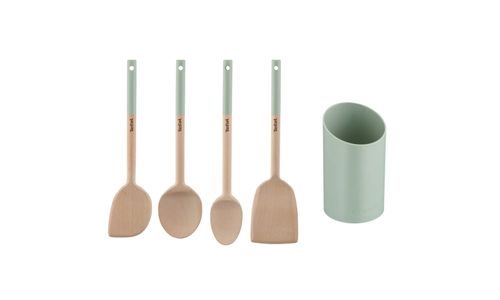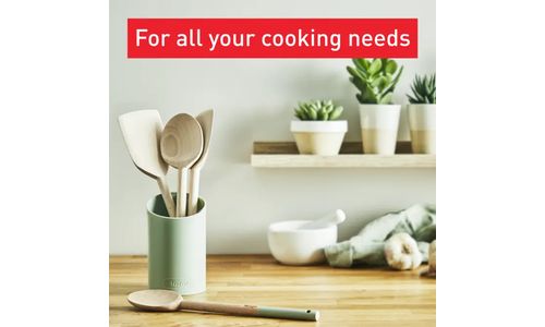 Tefal Natura 5-delige houten spatelset (schuine spatel, grote lepel, kleine lepel, spatel en houder), ideaal voor het bereiden van al je favoriete gerechten. Dankzij de houder kun je de tools gemakkelijk bewaren op het aanrecht.