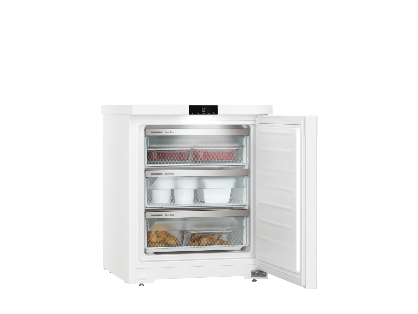 Deze compacte SmartFrost diepvrieskast van 55 cm breed kan snel worden ontdooid en gereinigd. Ook het temperatuurdisplay met tiptoetsbediening, LED-verlichting en adaptieve invriesautomaat zorgen voor extra bedieningsgemak. Nog meer gemak: invriezen én bewaren kan in beide lades. Een akoestisch deur- en temperatuuralarm helpt de producten zo veilig mogelijk te bewaren. En mocht door een stroomstoring de temperatuur oplopen, dan toont het display de hoogst bereikte temperatuur en is kwaliteitscontrole van de producten snel uitgevoerd. Geschikt om in een onverwarmde schuur te plaatsen.